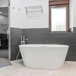 As casas de banho também incluem casa de banho separada e chuveiro. Além disso, secador de cabelo, lençóis de banho e toalhas são fornecidos para seu conforto.